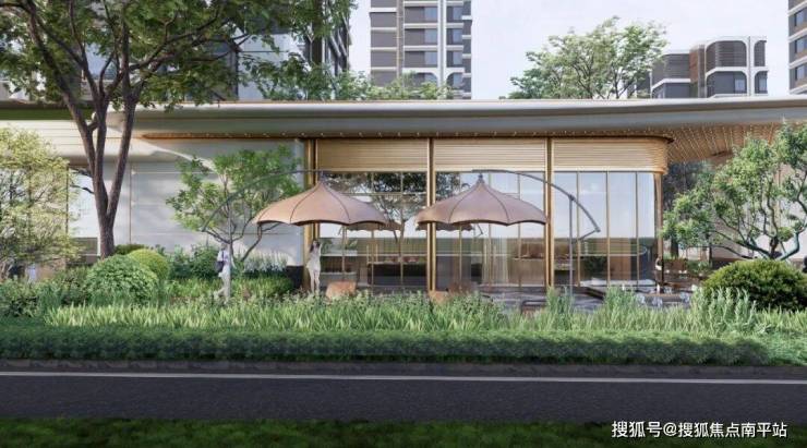 正如门庭一侧的「风情花街」,优雅的五角枫、罗马伞和休闲座椅,以林木软景为序,将动线转化为度假之旅。