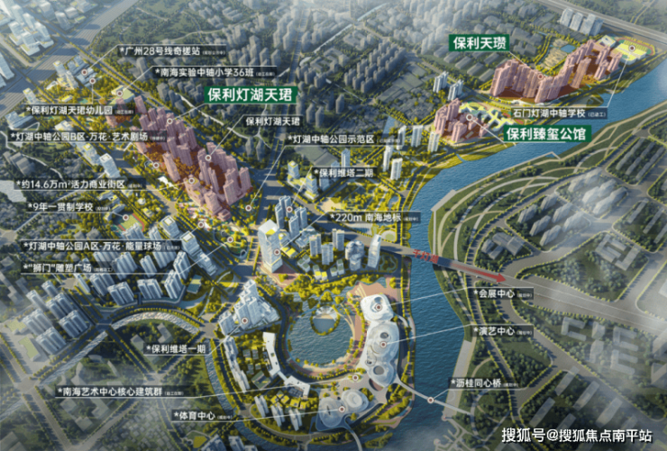 备受瞩目的南海艺术中心也已动工,保利灯湖天珺配建的千米中轴商业街紧随其后即将开建,体量超14.6万平,采用开放式公园化街区形态。可以说,你在规划图上看到的蓝图,正在一点一点变成触手可及的繁华。