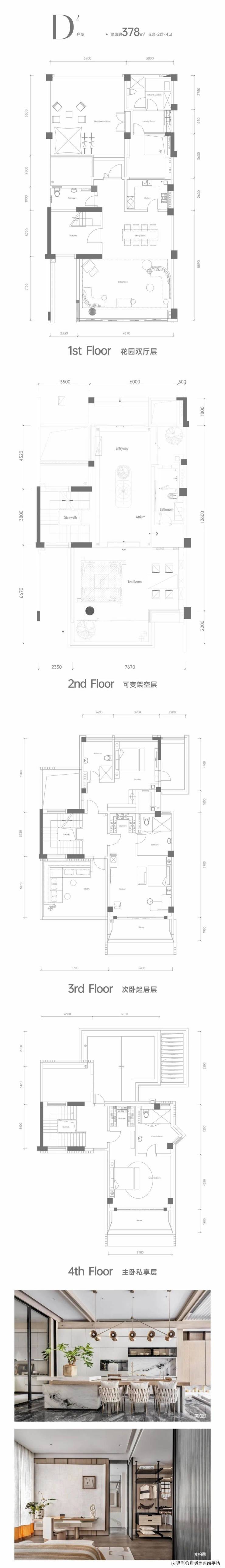 310-380㎡(实得400-600㎡),户户独立车位,毛坯自由定制,总价1400-2300万