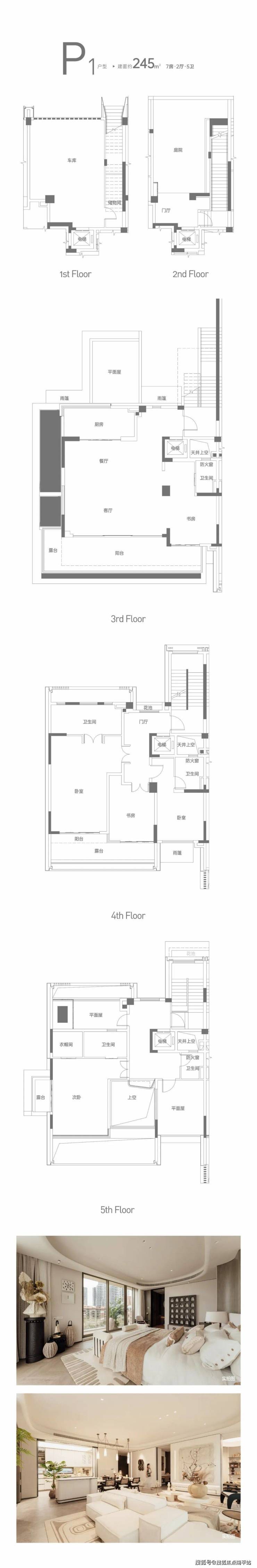 下叠255㎡(实得450㎡):80-130㎡私家庭院+5.7米挑高厅+电梯+影音室,清水850万起