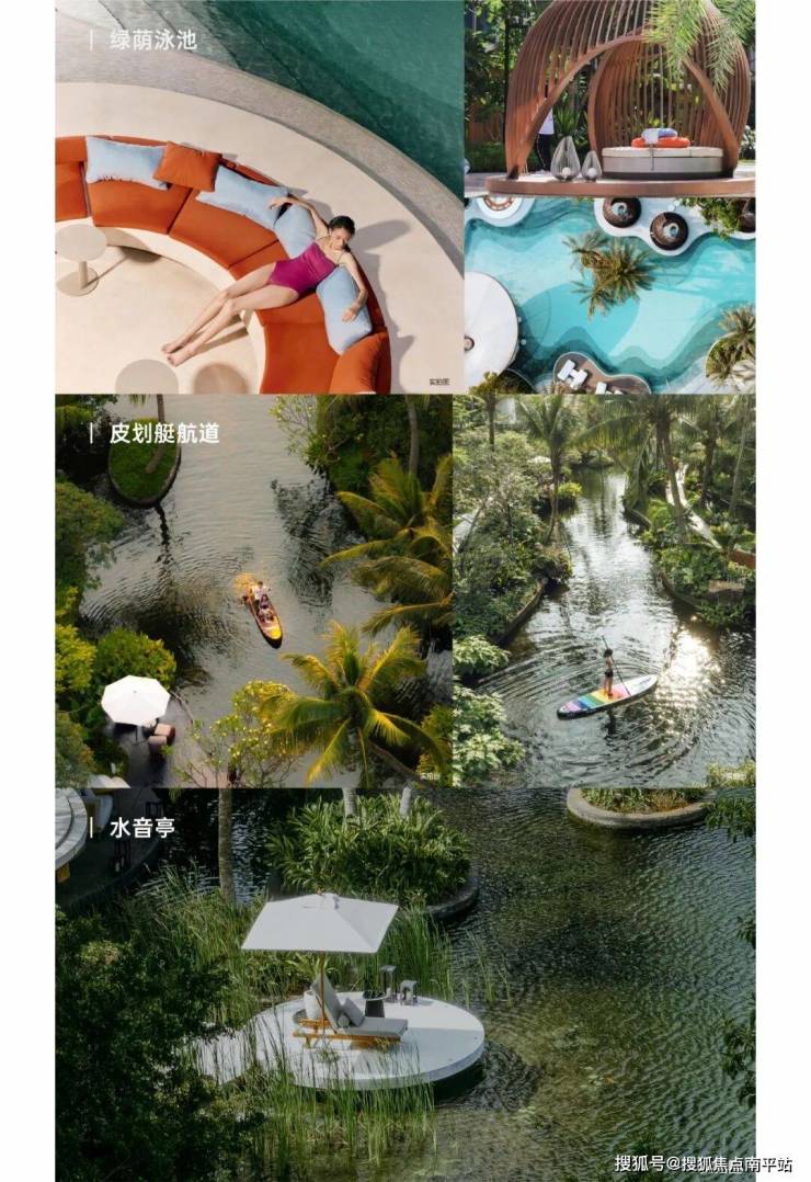 社区:36个架空层(麓客第二客厅)、言艺术馆、绿荫泳池、皮划艇航道、水音亭