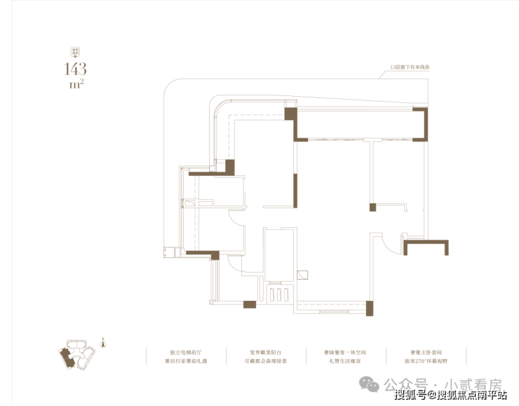 建面143㎡户型,奢阔餐客一体空间,宽界瞰景阳台,尽藏都会森境绿景。
