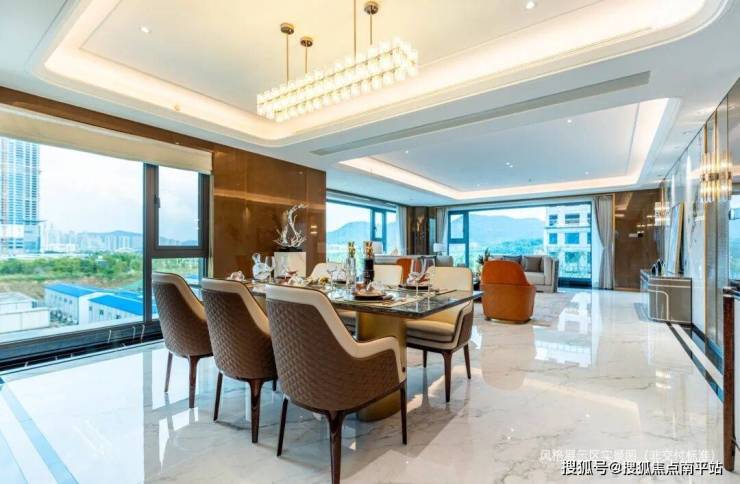 抬高式设计强化防潮排水,金刚砂固化抛光地面,星空顶铺展浩瀚,酒店式大堂光厅。酒店式入户与公共客厅,礼序层层递进。