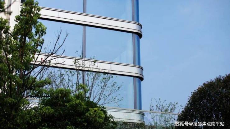 采用大面宽玻璃幕墙搭配金属铝板线条,超高窗墙比设计,不吝用料和成本,隔绝喧嚣。