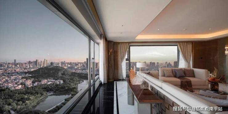 全楼栋公建化外立面,南地块客厅转角创新采用造价更高的弧形玻璃,以更高成本、更精密工艺,保证立面的美观性,勾勒轻盈、透亮的无界天幕。