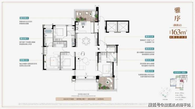 ②全盘纯粹改善四代宅。项目规划7栋高层住宅,户型为建面约163-218㎡四代宅,通过全T2设计和超高使用率,重构世家望族的生活方式图景。
