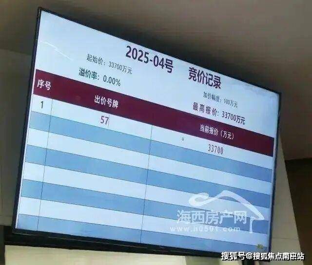 2025年3月28日,在福州市四城区年度首轮土拍大会上,经过1轮竞价,57号竞买人福州建总地产有限公司以底价3.37亿竞得福州宗地2025-04号,楼面地价13842.1元/㎡。