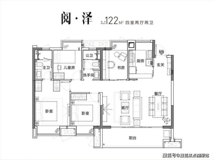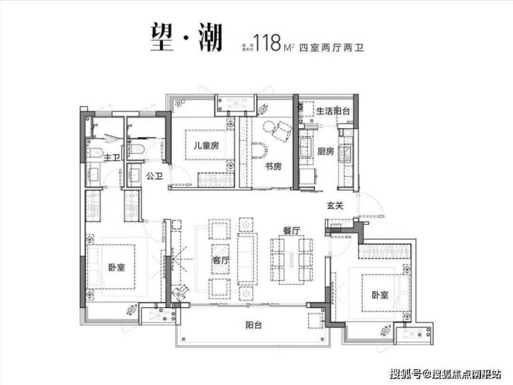 建面约118㎡的四房两厅两卫,大横厅的设计,搭配南向观景阳台,主卧自带飘窗,星级酒店般的行政套间中,休息区、衣帽间、卫浴间由南自北依次排开,其中卫浴间还做到了“三段分离”,儿童房与厨房之间,还能多出一个尺度不小的独立书房。