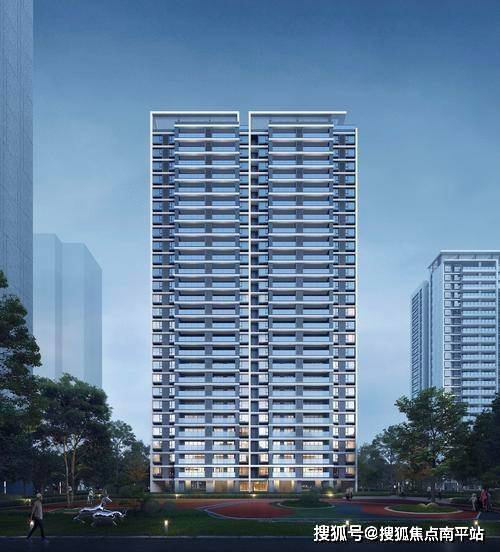 从简约气派的大门进入,映入眼帘的是镜面叠水,交错的灌木、挺拔的朴树,两侧还架着台阶花园,阳光大草坪、树下花园、降糖花园和活力球场等分布其中,环形悦动环跑道将各场景串联。
