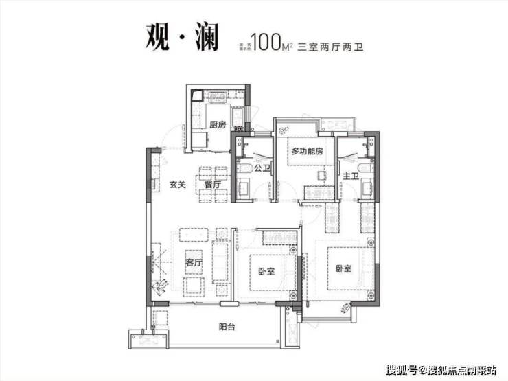 建面约100㎡的户型,三房设计,南北通透,做到了三开间朝南,搭配南向宽景阳台。U型厨房的设计,即使夫妻搭配也不显局促。主卧和次卧安排的大飘窗,更是将采光的艺术运用到了极致。