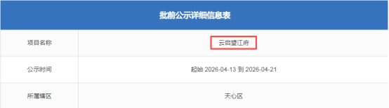 4月13日,长沙市自然资源和规划局发布“云启望江府”批前公示。