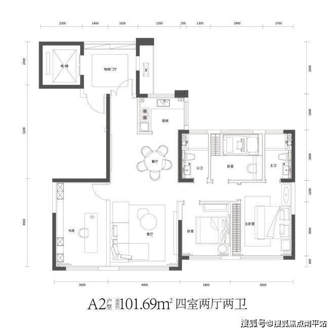 二、户型绝杀:100-130㎡全四房,新规下 “负公摊” 神设计,三代同堂不拥挤