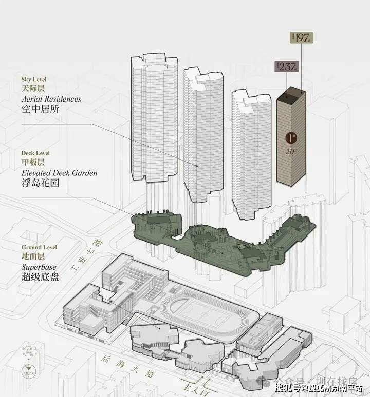 这一设计,借鉴了香港、新加坡的垂直复合开发模式,其本质是 一次彻底的结构创新。它不仅重新定义了地面与天空的关系,更旨在创造一个 丰盈、叠加的立体生活场。