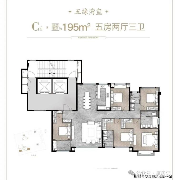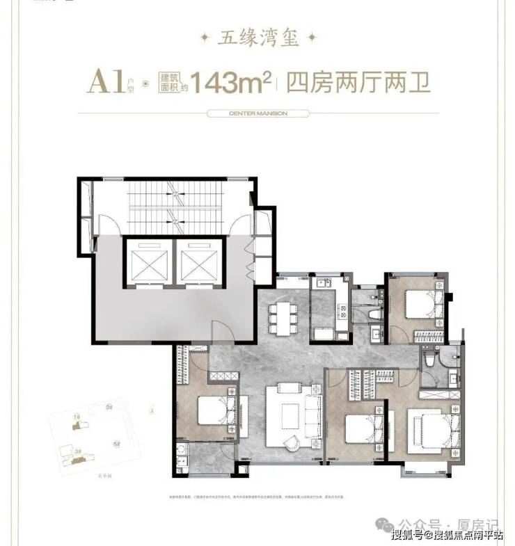•主力户型有143㎡的四房两厅两卫,189㎡的四房两厅三卫,以及195㎡的五房两厅三卫;