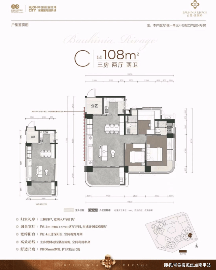户型:108-148㎡ 3-4 房纯改善房型,无小户型。