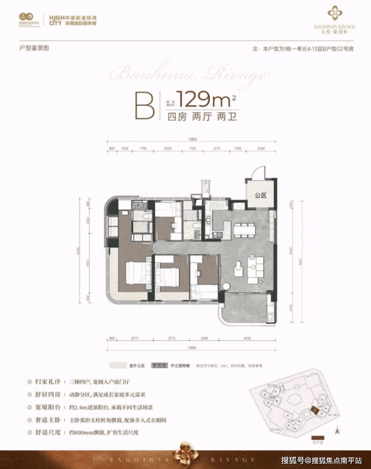 3 梯 4 户 ,独立电梯厅,私密性强。
