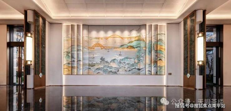 最令人惊叹的,是那幅约11米×5.5米的 岛内最大手工掐丝珐琅彩壁画《山水五缘盛景》,由主创过22年北京冬奥会、25年春晚艺术作品, 国内知名的景泰蓝工艺美术大师丁晓飞担任创作顾问。0.3毫米的非遗金丝手工掐花,这种源自宫廷的掐丝珐琅技艺,通常用于制作珍贵艺术品,而今却成为 世家门徽的永恒镌刻,见证着传统工艺在当代的复兴与创新。
