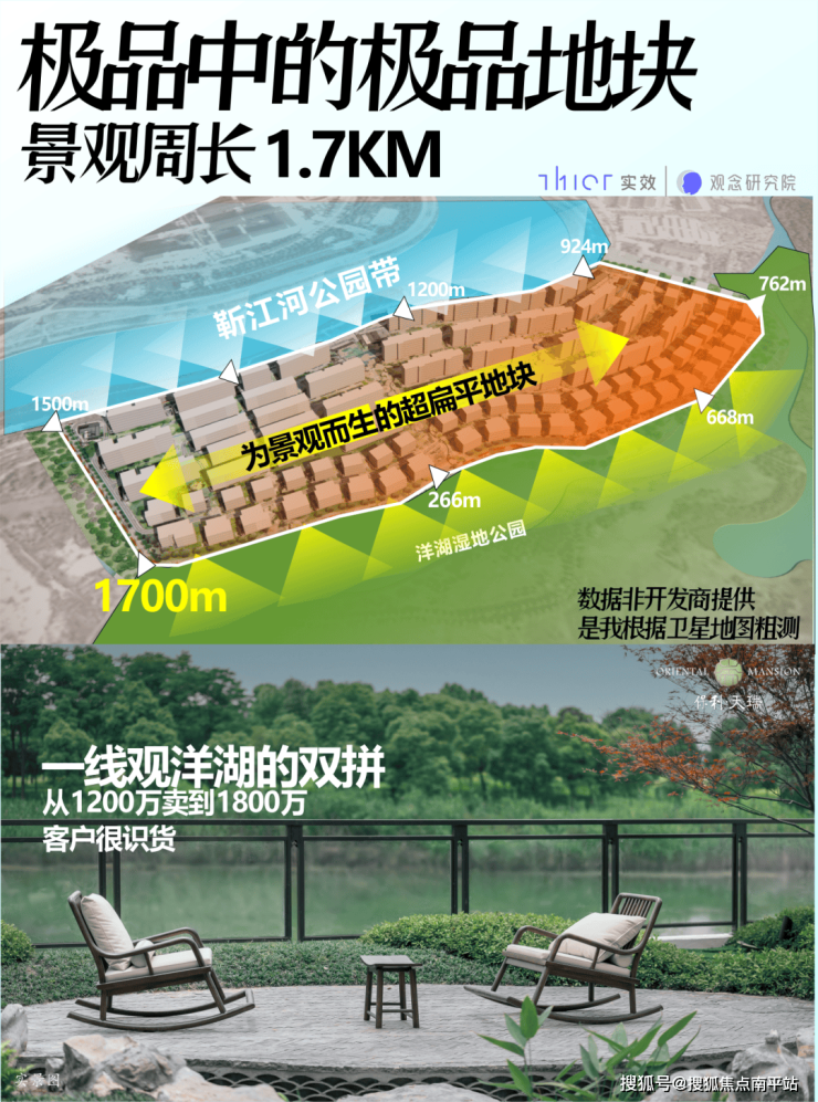 这块200多亩的土地,前后左右都无视线遮挡: 观景周长居然达到了1.7km。
