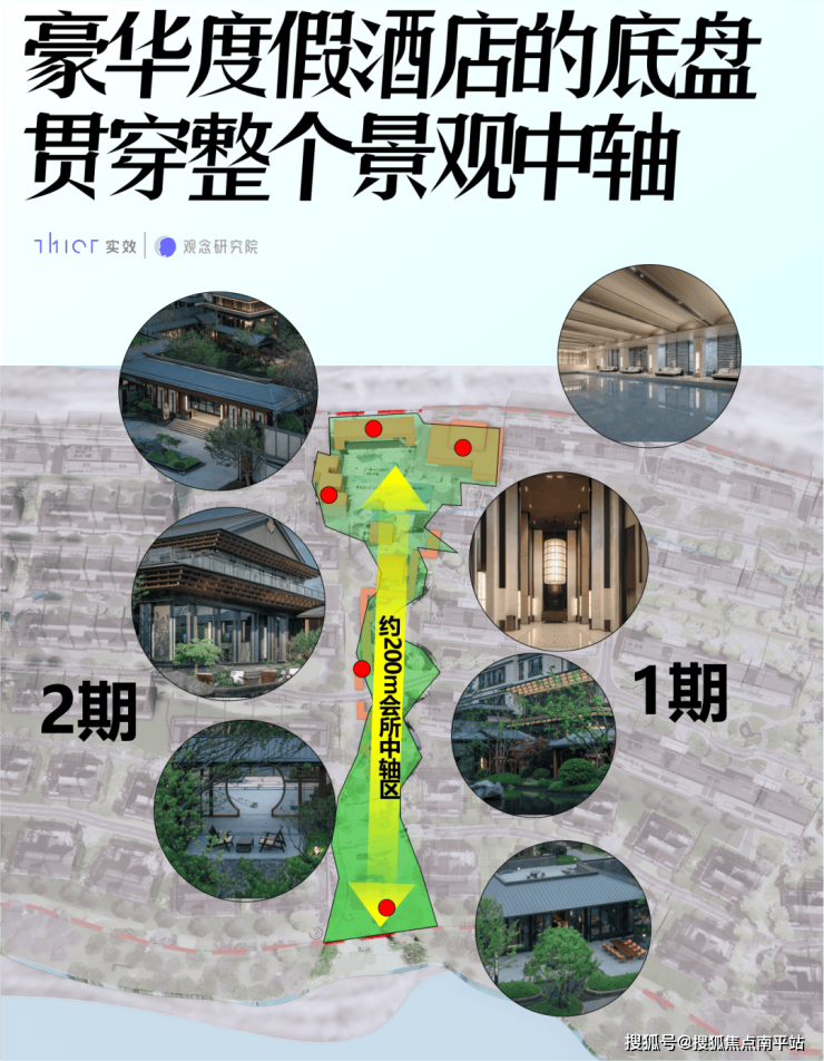 从南到北的中轴线上,做了200多m长的休闲分离式会所群。