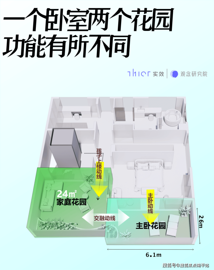 这就是压倒级的功能,一个花园对主卧私用,一个花园可以孩子同乐的家庭花园,两个花园并联也私密。