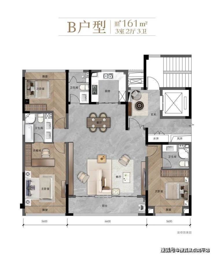 建面约161㎡,三室两厅三卫