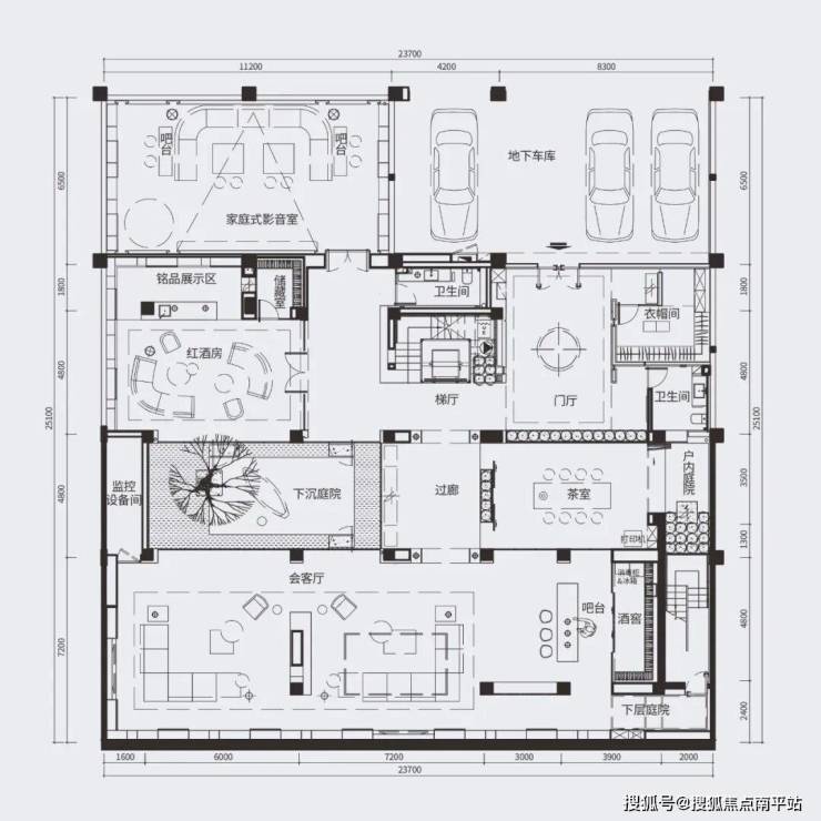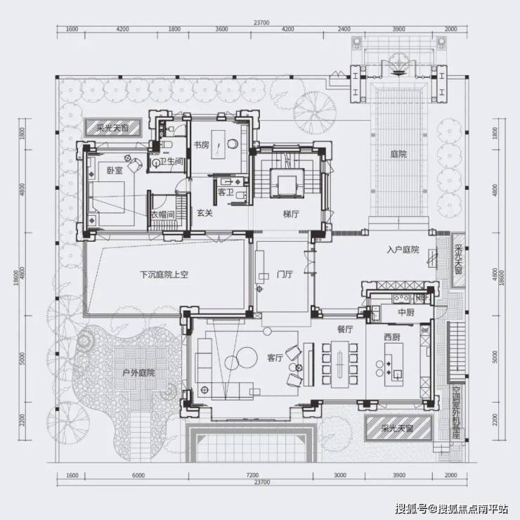 地下室同样实现院中有院——下沉庭院