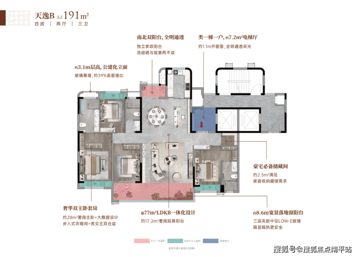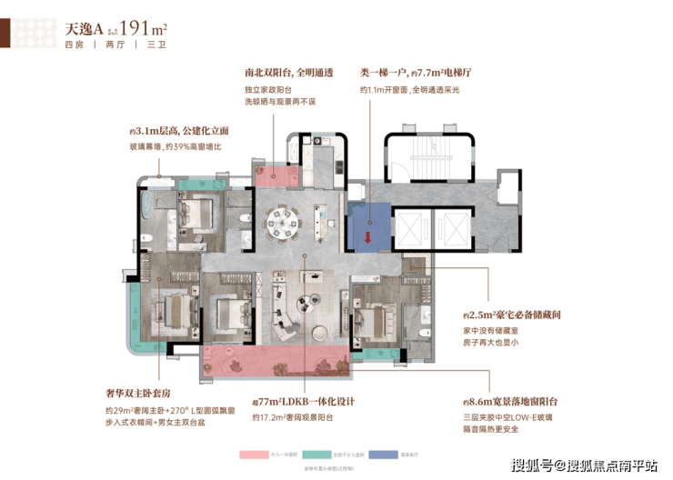 项目使用率创新突破,以超越常规大平层的尺度与质感,重新诠释了“平层别墅”的居住想象。