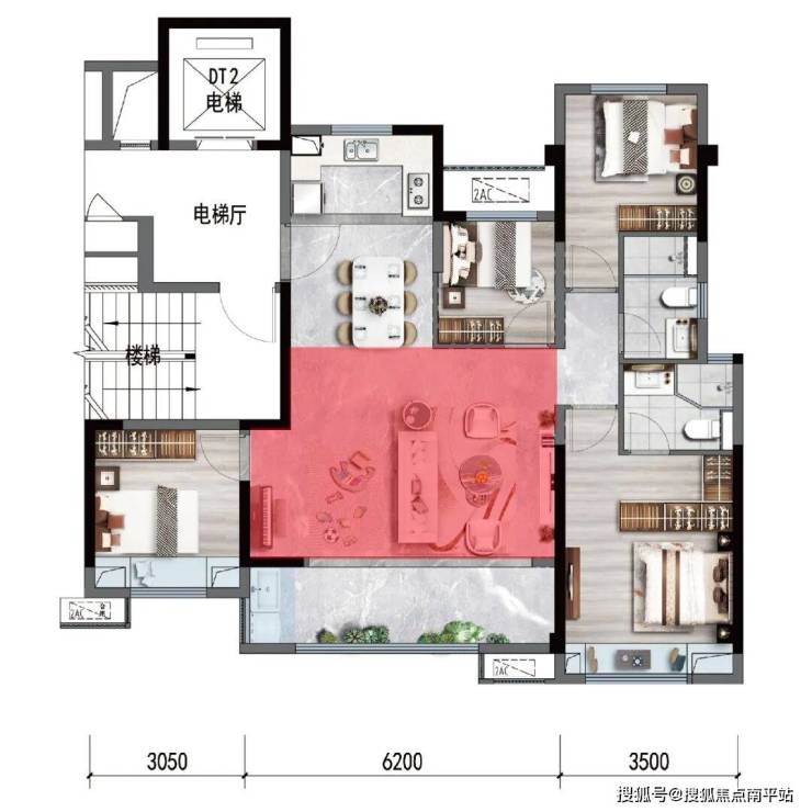 而南水滨江华庭,为居者打造了约6.2M尺度横厅,这种大横厅的设计,不管是招待客人还是自己休息,家里的客厅都发挥了很重要的作用;