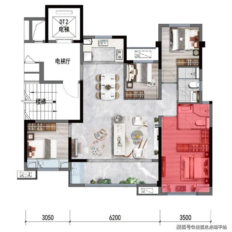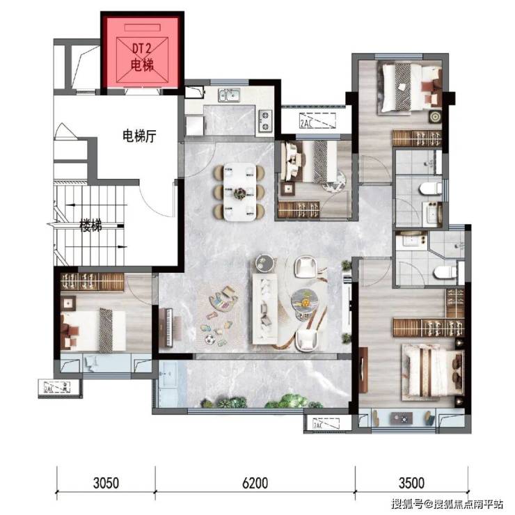 6.2M阔绰开间横厅,使得采光面积更广,能够接收到的阳光直射会更多,而且每天的日照时间也会更长,使得整个房间更加的明亮通透,给人一种阔景宽厅的舒适感;