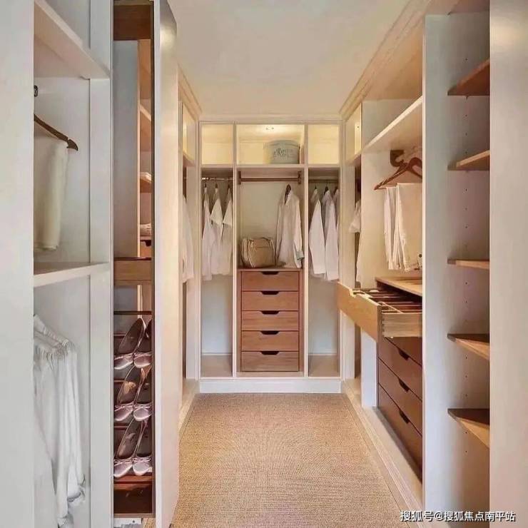卧套房步入式衣帽间,容纳多重生活节奏,可设置多隔层衣柜,储物柜功能分区,美观与实用兼具,收纳太太的漂亮衣服和美好心情;