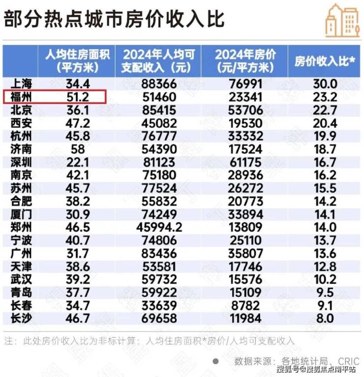 其中一个指标,人均居住面积,更值得关注,福州51.2平,在榜单城市里面排在第二。