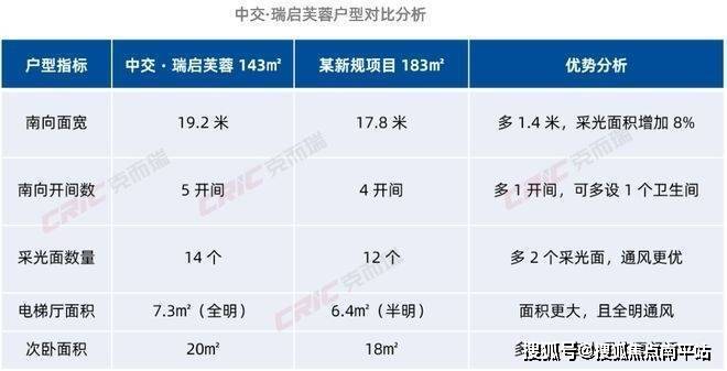 项目143平米户型尺度对比近期某新规项目183平米户型来看,南向面宽、开间数、电梯厅以及次卧空间均有明显优势。