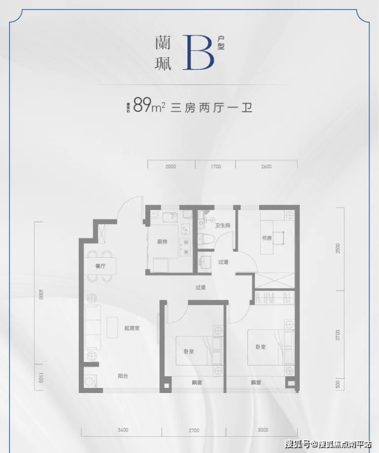 2#楼17层到顶,2梯4户,80平米两室,89平米三室。