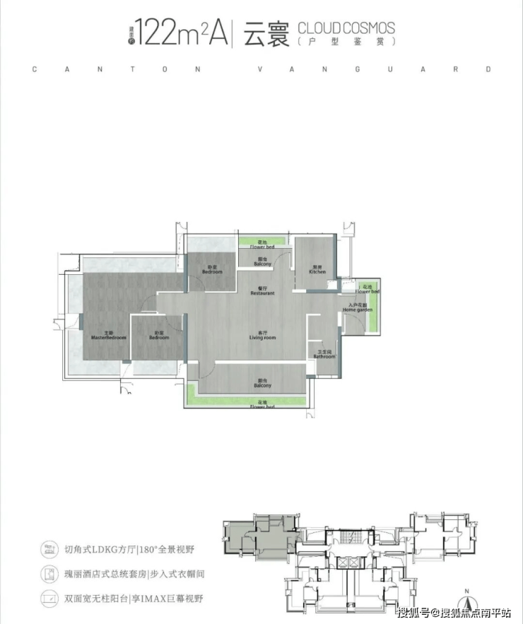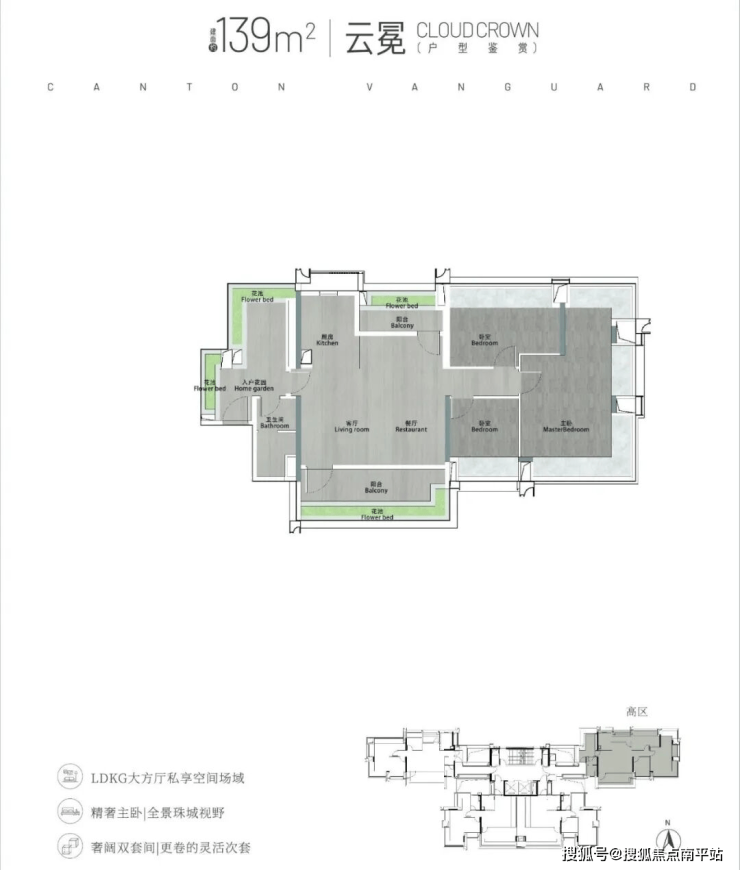 139㎡天际大平层4房3卫,仅15套,配置占据东边梯腿 23层以上270°环幕视野尽揽珠江新城繁华。