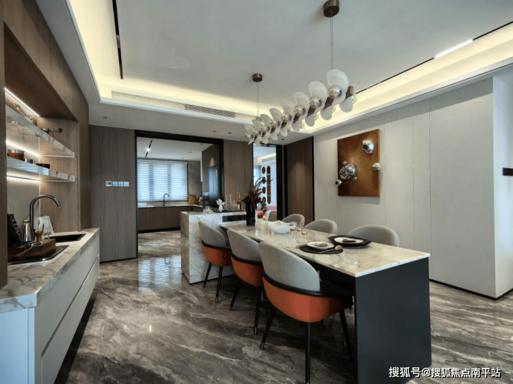 129户型,这个户型相当于老规的170左右。整体中规中矩。亮点是一个非常大独立电梯厅,接近于私梯入户,面积达到了8平,而且空间规整,可以做满墙鞋柜;户内设备平台多,可以分体装空调,不像有些项目强制上中央空调;客餐厅、主卧、厨房尺度都比较大,次卧也不小。