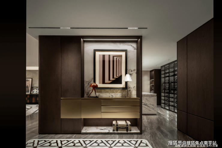 ✨天然进口奢石:入户玄关柜甄选芬迪白奢石、背景墙、洗手台面采用云水谣奢石,淬炼高贵血统;