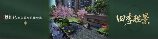 三进沉林碧影,名木入园,甄选五针松、双色紫薇、百年红花继木,打造百年光阴沉淀之园;四季胜景,樱花林、金丝楠木林、红梅林,尽显东方庭院气度。