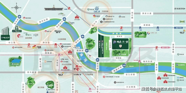 3️⃣三轨:直线距离约1.2km可达1号线陈塘庄站、9号线中山门站,11号线海河东路站,三地铁轨道交通,高效出行,优速畅达;