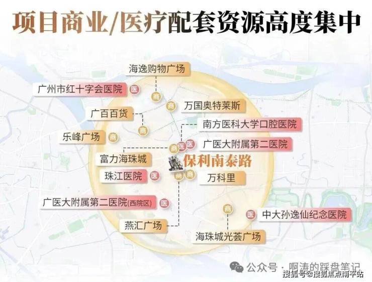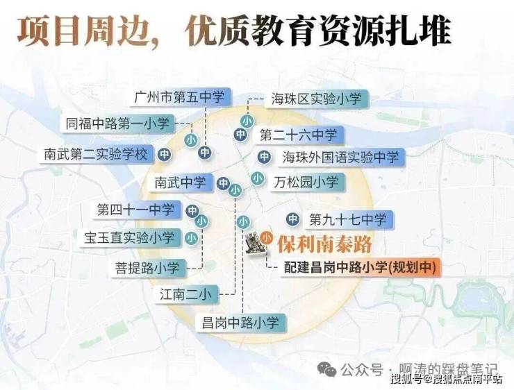 海珠西没大盘,但是保利南泰路地块就是一个38万平综合社区,从配套来看,保利南泰路项目所有牌面筹码都已经摊开——一个“学铁商医园体住”七边形全熟配套圈。
