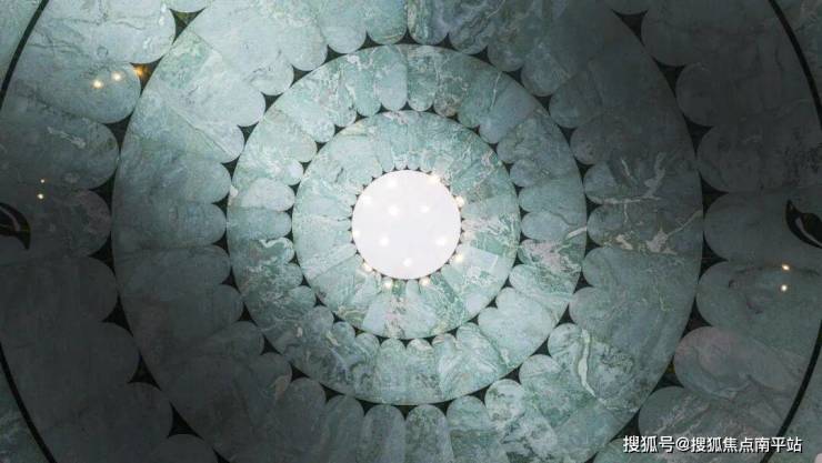 维·德厅水吧台壁上的宝相花纹,从莲花、牡丹、菊花的抽象写意中,解读着《华严经》的“一花一世界”……