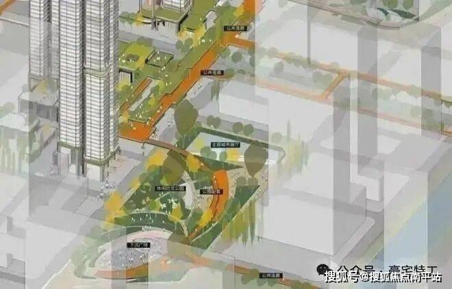 高层住宅的公区设计至关重要。本方案以内部庭院为中心,二层设人行天桥连接休闲区;三层规划户外花园和泳池