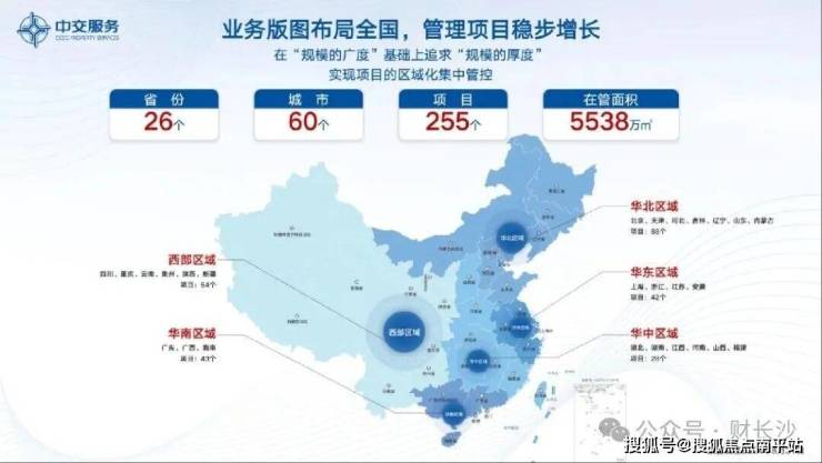 ◆业务布局全国: 34载深耕不辍,业务版图覆盖全国26省60城,服务约255个精品项目,专业在管面积约5538万㎡。