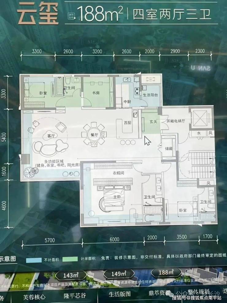 ——约19.2米南向全景视野 比肩传统建面约180㎡户型 得房率约112%(含私梯厅)