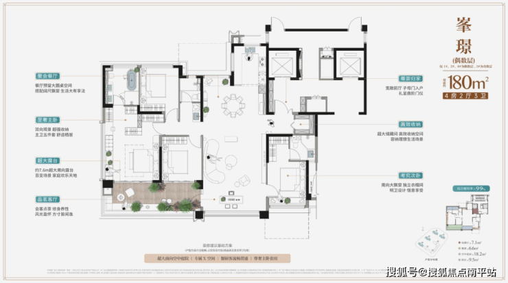 压轴加推的8#楼180㎡传世空中院,以270°寰幕全景视野,将壮阔江景与宋韵园林盛景尽收眼底。LDKG一体化阔厅面宽达7.2米,搭配全景落地窗,实现“江景入户、阳光满室”;灵动 X 空间可根据家庭需求改造为书房、健身房,满足全生命周期居住需求;行政级主卧套房、四卧全尺寸规划,以超四代大宅的空间尺度,承载家族欢聚与个人私享的双重需求。