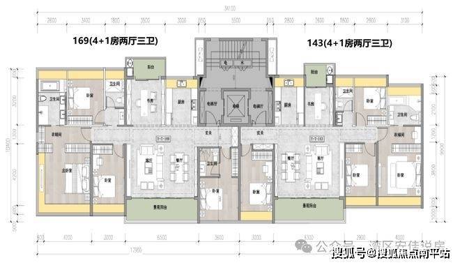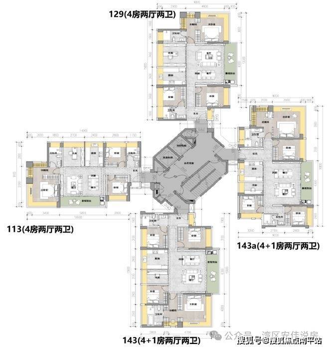 瞰山T4高层:建面约115-143㎡四房到五房