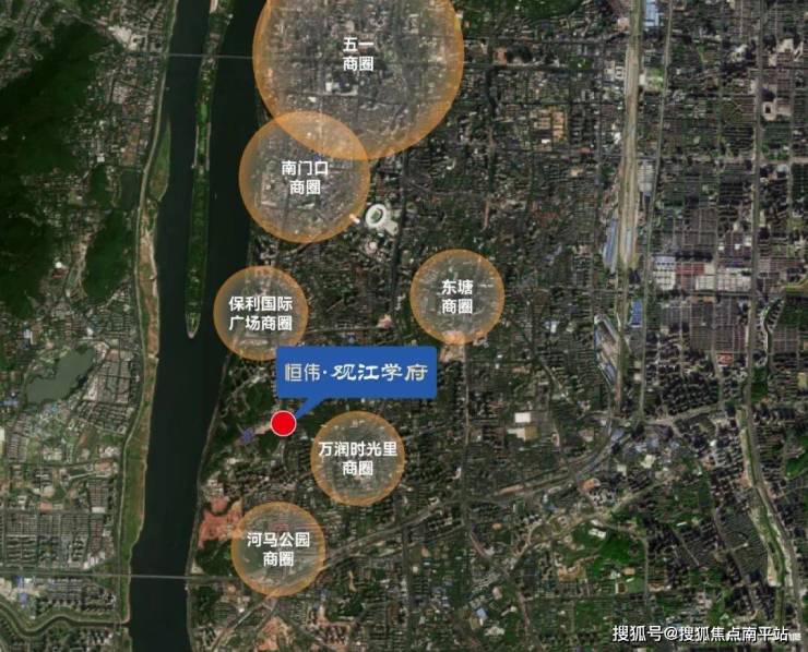自带两千方底商,两公里范围内有三个商场:南郊生活广场、通用国际商场、东怡外国商场。三公里抵达南门口、东瓜山,五公里抵达五一广场。