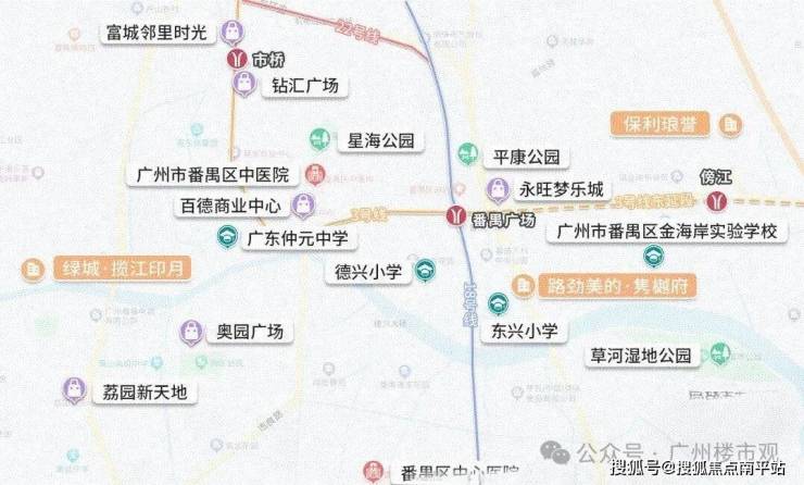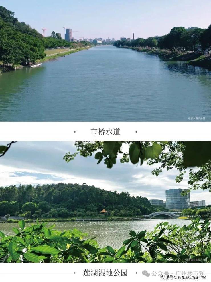 揽江印月是位于大夫山和市桥板块交界处的沙头片区,属于番禺市桥板块,临市桥水道,西面是莲湖湿地公园,所处地块是2022年由番禺交投以总价约14.3亿元,折合楼面价约1.34万元/㎡拿下的番禺区沙头街禺山大道南侧STJ15-02地块。