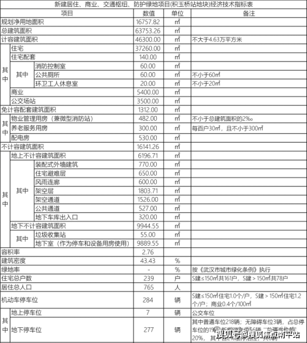 项目总建筑面积63753.26㎡,计容建筑面积46300㎡,住宅建筑面积37260㎡,容积率2.76,一共239户,机动停车位284个。