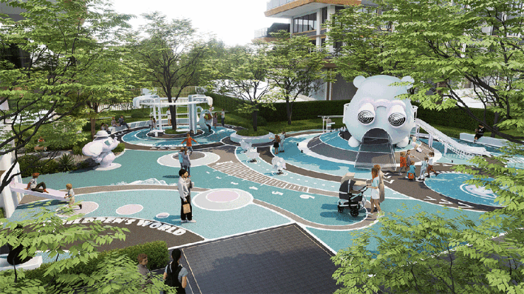 ◆ 最后,给出了“文化豪宅”的新解法。融入泉州非遗木偶戏IP全龄儿童乐园;提取闽南砖花、竹藤编等传统元素融入社区中;将出砖入石重构为建筑格栅等。当代摩登与非遗文化的碰撞下,独特的人文审美形成了自带情绪价值的生活方式。