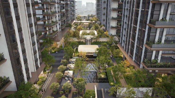 ◆ 首先,生活场景丰富度第一次做这么极致。下沉庭院、全景式鎏金画廊、约105米楼王中央艺廊、浮光水廊、倚画栖林等,把景观还给生活,有玩、有赏、有逛、有互动、有社交……这就是生活浓度的体现。